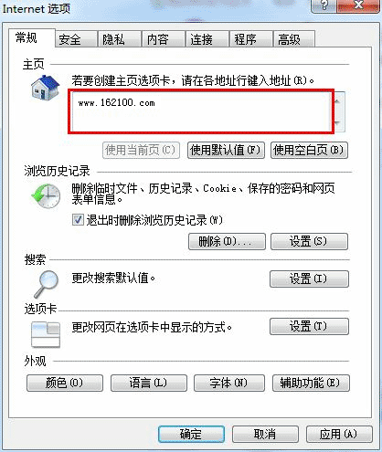 2)然后在打开的对话窗口中的主页栏的地址输入框中输入“https://www.7777702.xyz/”,然后点击窗口上方的“应用”按扭即可,如下图所示: