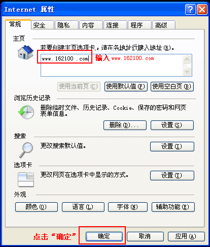 然后在打开的对话窗口中的主页栏的地址输入框中输入“https://www.7777702.xyz/”,然后点击窗口下方的“确定”按扭即可,如下图所示: