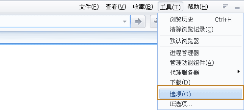 世界之窗浏览器设置主页的方法: 1)首先,打开浏览器上部菜单栏的“工具”栏,在下拉列表中选择“选项”,如下图所示: